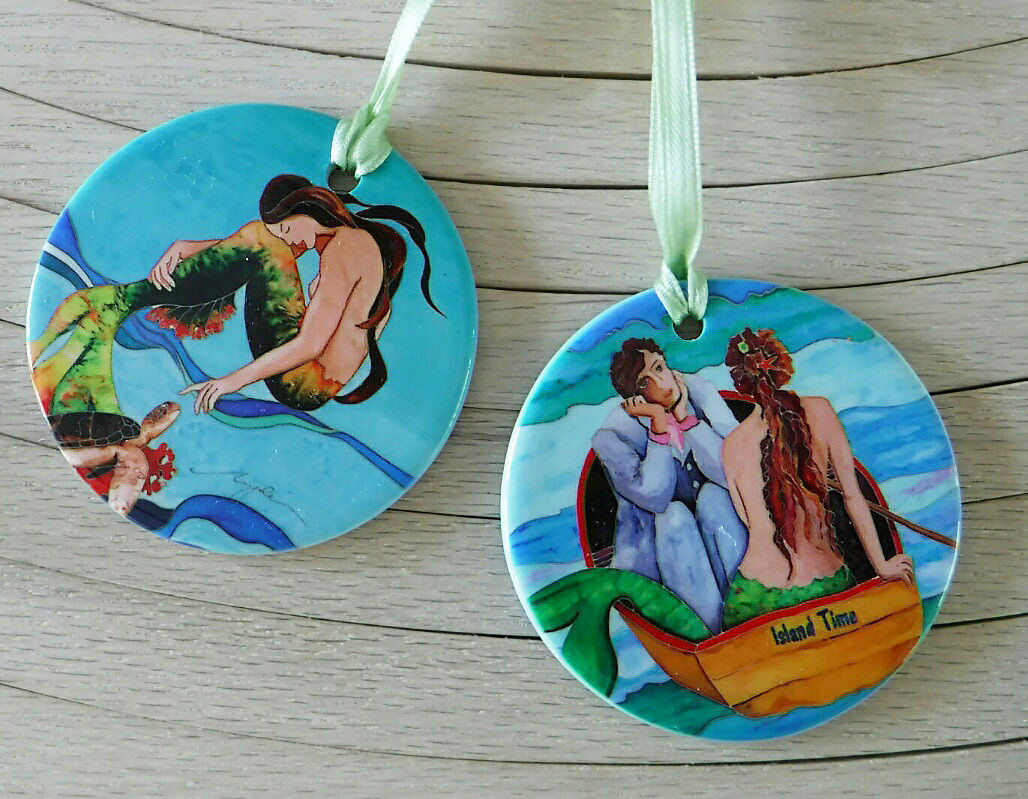 | ISLAND TIME (boat) | MY LITTLE FRIEND (mermaid with with seahorse) | FRIENDS (mermaid with turtle) | SITTING PRETTY | BAHAMAS BOUND (single turtle) |